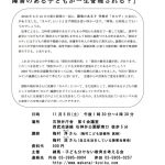 2016年10月27日 / 最終更新日時 : 2021年3月21日 ki-ki- きーきーパンやけた? 11月5日に練馬で「えっ、学校に子どものカルテ!ー障害のある子どもが一生管理される?」講演会をします 相談室では幼稚園にあがる前の子ども、小学生から高校生、社会に出て仕事をしている人、介護保険を受けて地域生活をしている人と、毎週、あれこれ話をしたり、必要な書類を書いたりしています。それぞれの居場所で暮らしやすく手伝いをす […]