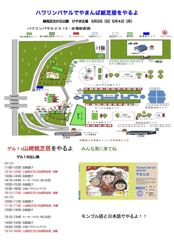 5月3日と4日に練馬区の光が丘公園でモンゴルの春祭り、ハワリンバヤルがあります。