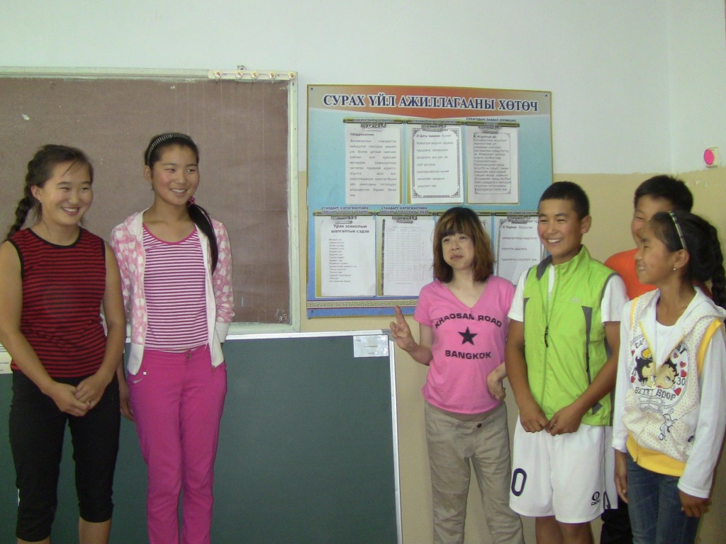 車椅子の娘と一緒に、モンゴルの田舎の学校に黒板を届けました。