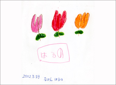 上や本文に使われているこどもたちの絵は、梅村こども診療所相談室に展示されていました。今はファイルに入れてますが閲覧できます。